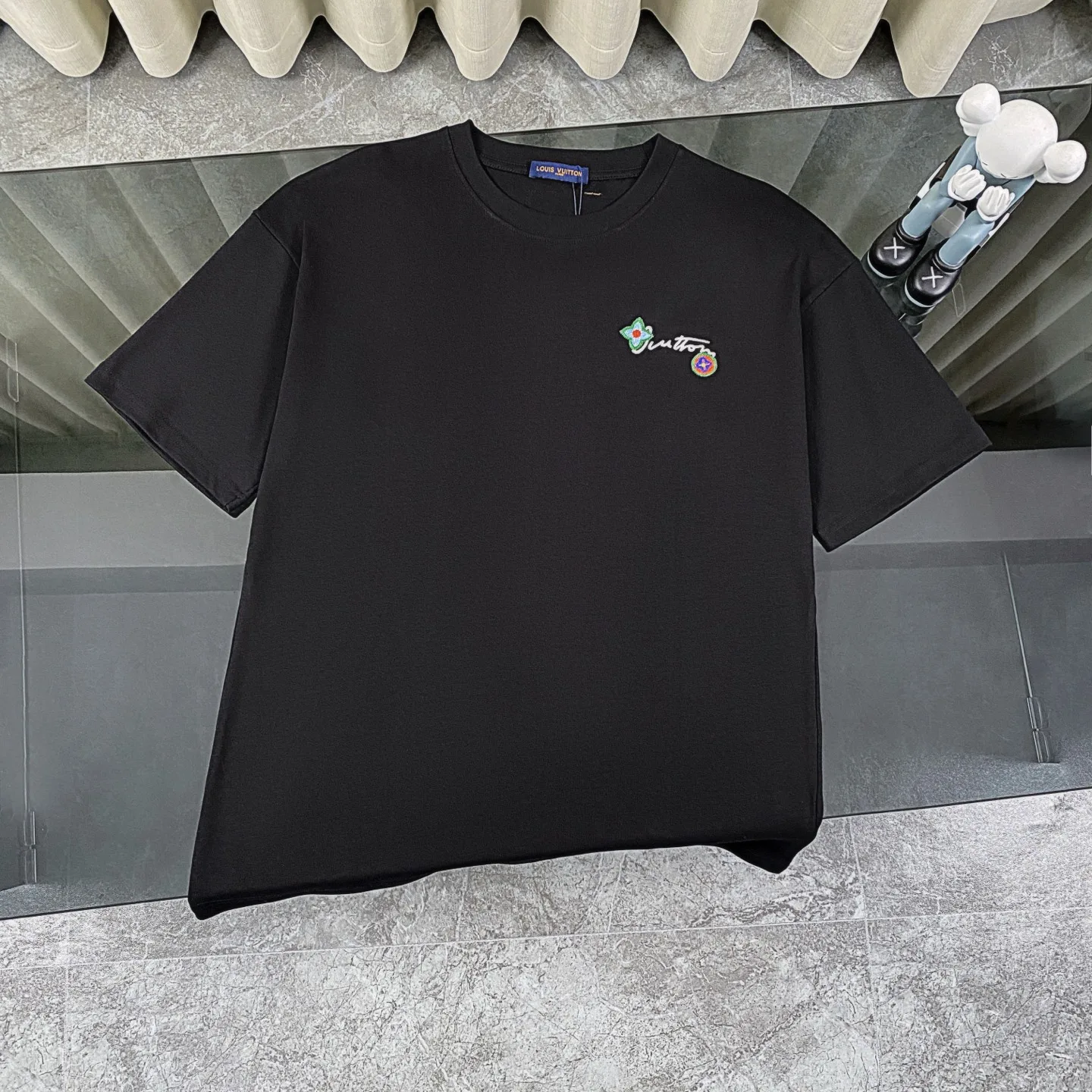 LOUIS VUITTON/Louis Vuitton Kurzarm-T-Shirt mit Rundhalsausschnitt und Blumen- und Monogramm-Stickerei auf Vorder- und Rückseite.