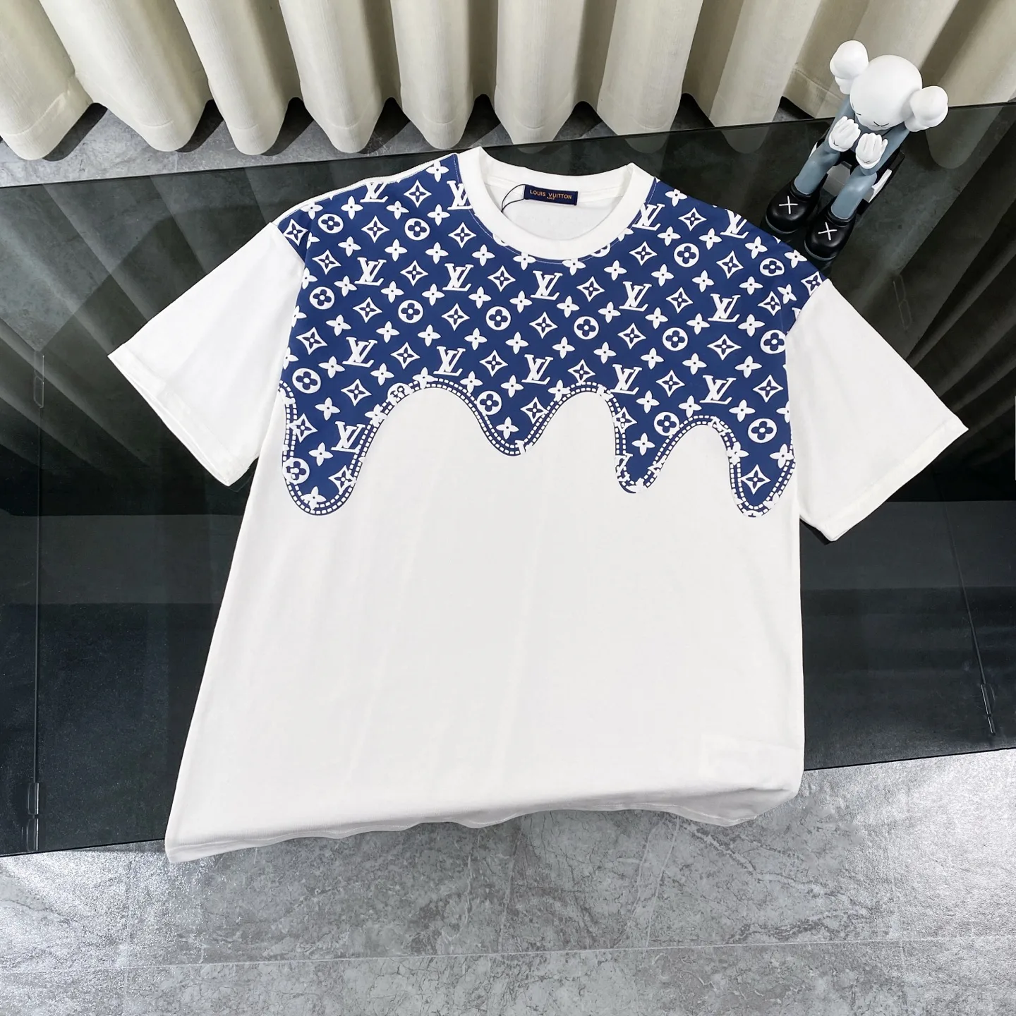 LOUIS VUITTON/LVs neuer klassischer Monogramm-Print mit Wolken-Patchwork an den Schultern, kurzärmeliges Rundhals-T-Shirt.