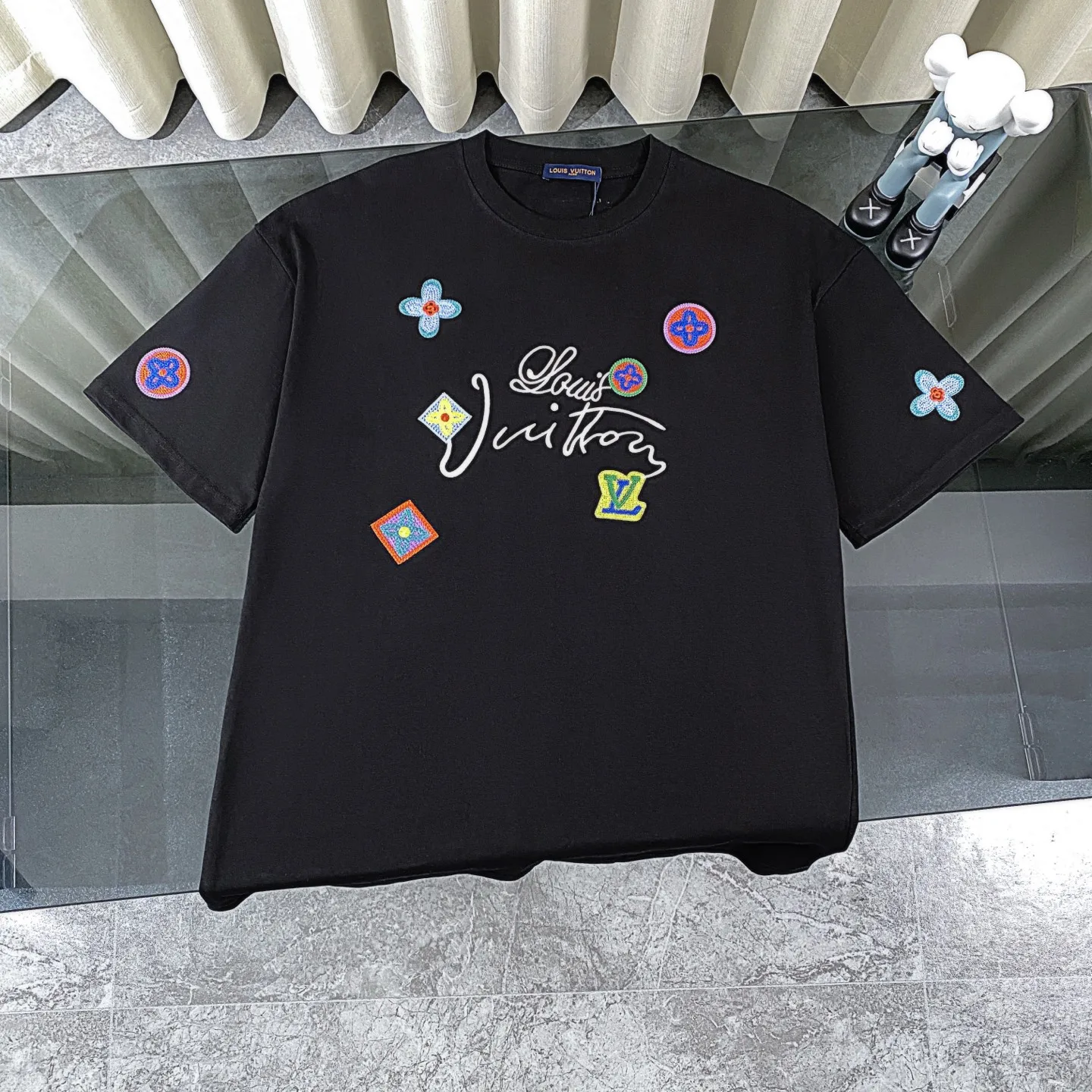 LOUIS VUITTON/LV Neues Dopamine T-Shirt mit farbenfrohem, monochromem Logo-Stickerei und kurzen Ärmeln und Rundhalsausschnitt