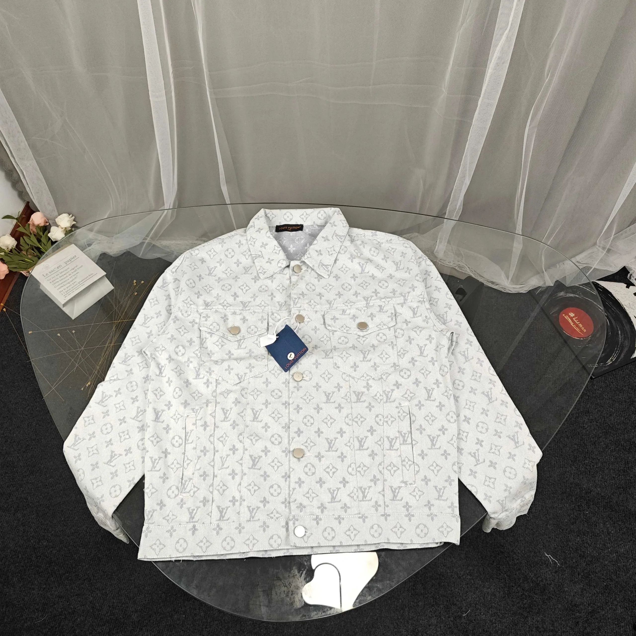 Louis Vuitton/Louis Vuitton LV Allover-Jacquard-Print mit verwaschenen Taschen und Jeansjacke
