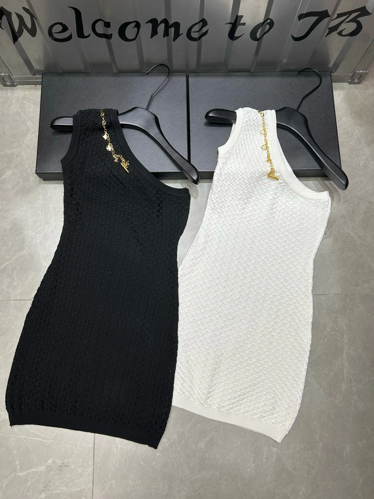 Louis Vuitton LV Handgenähtes, schulterfreies Strickwestenkleid mit Kettenverschluss