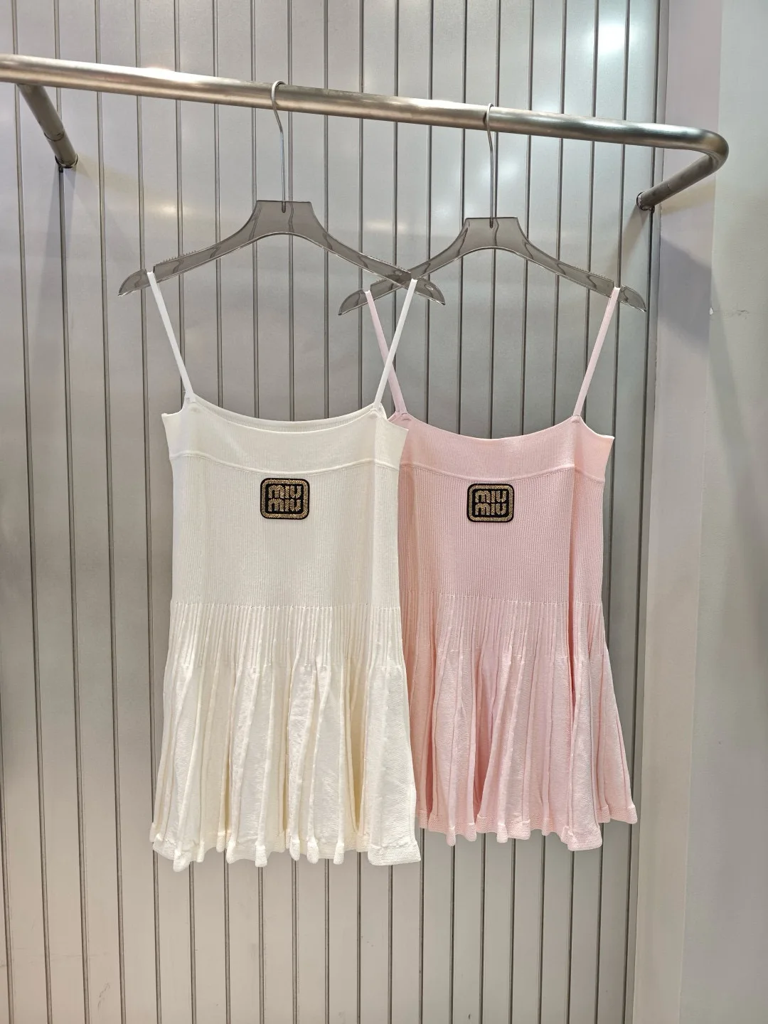 Miumiu Miu Miu Stricktop mit goldgesticktem Badge und Blockschrift