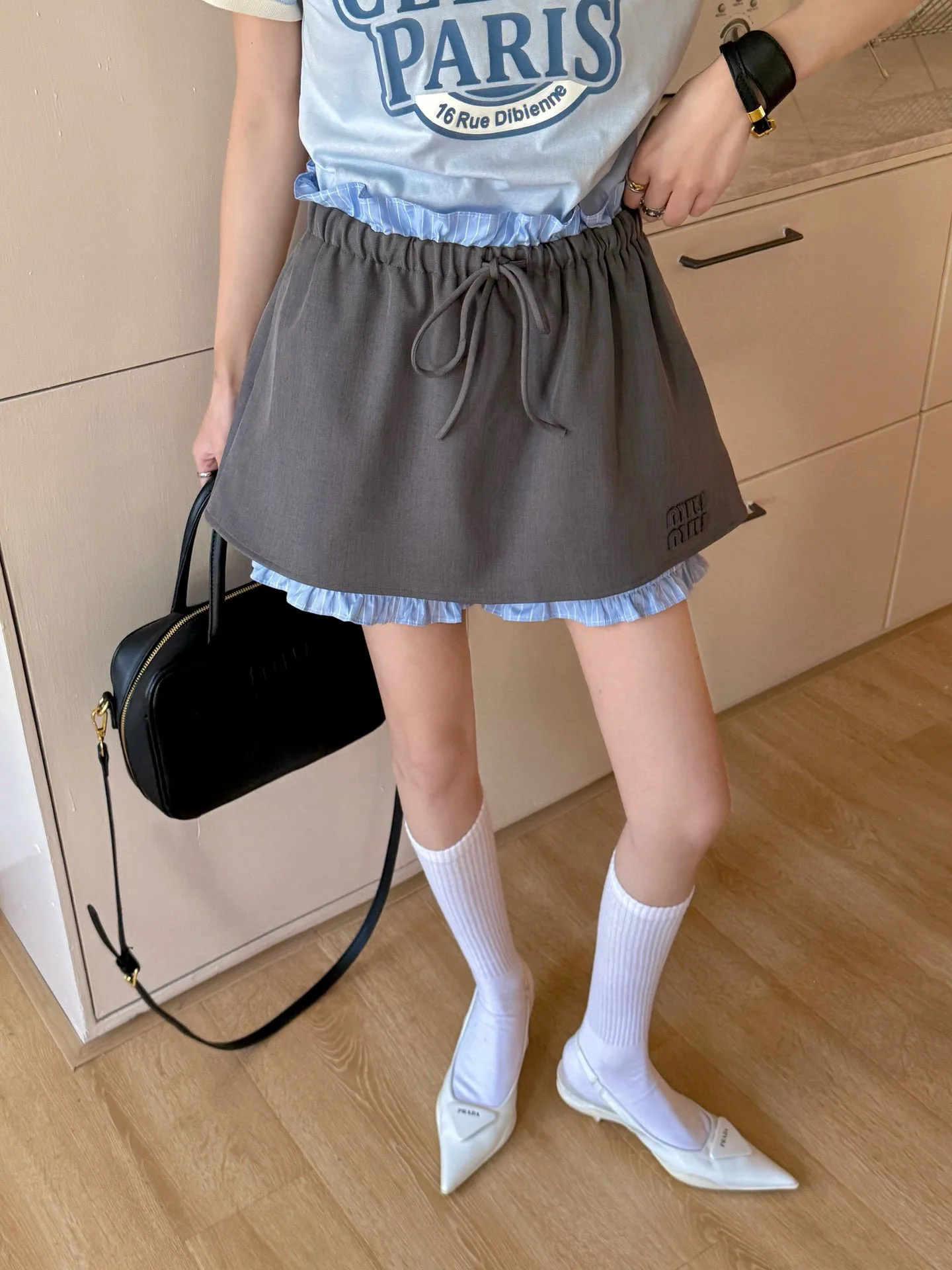 Miumiu Miu Miu Logo-Stickerei, Shorts und Rock mit elastischem Bund und Kordelzug