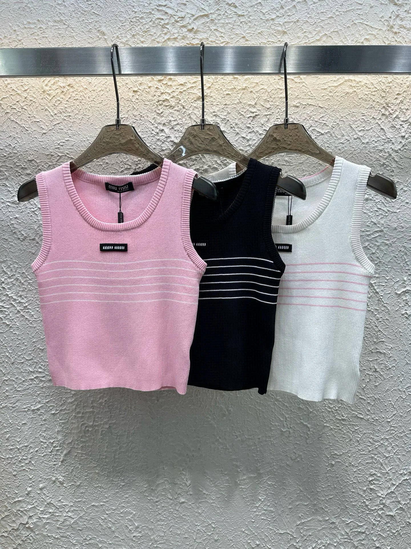 Miumiu Strickweste mit individuellem Logo und Streifen
