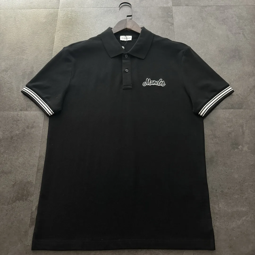 Premium Moncler Poloshirt aus schwarzer Baumwolle mit Stickereien