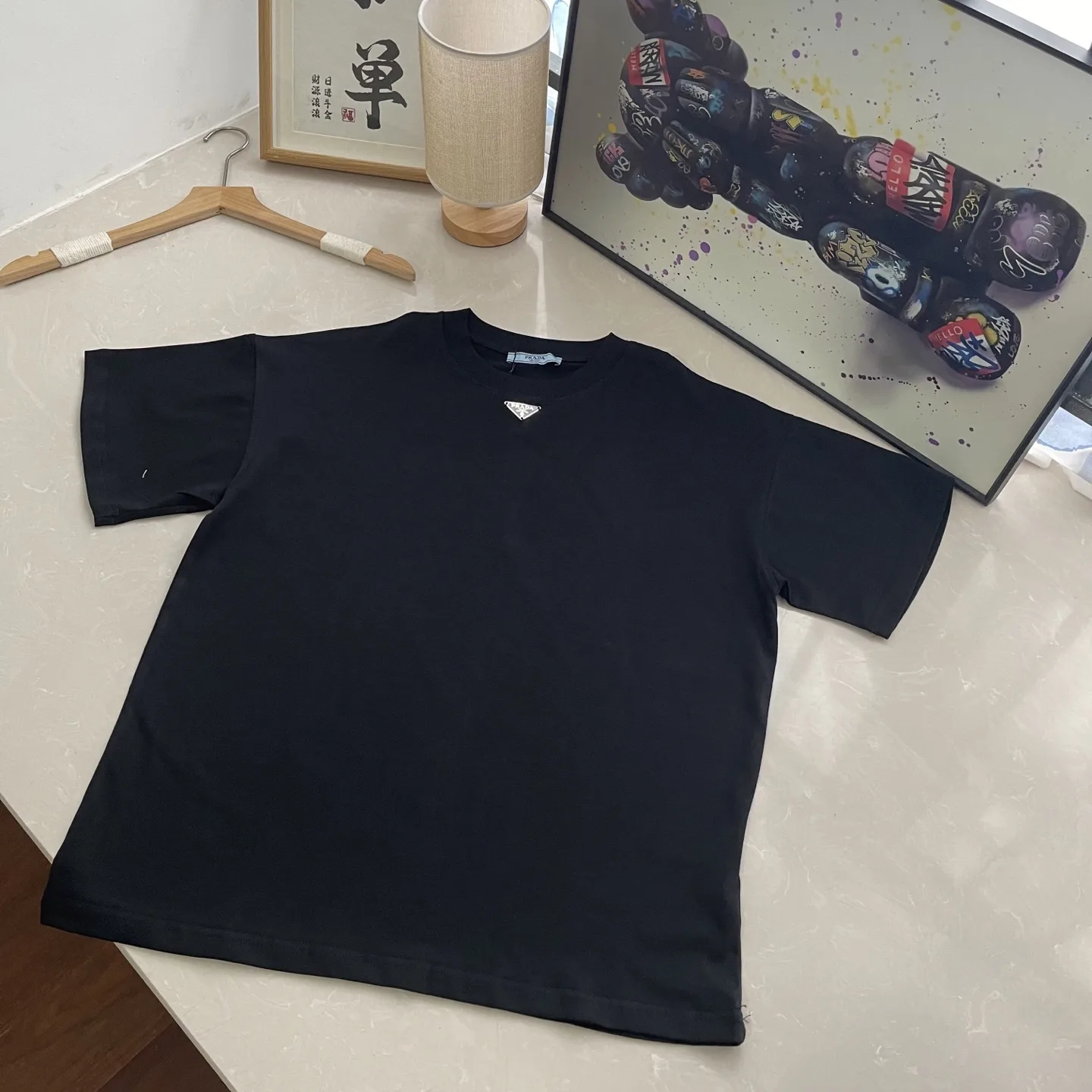 Neues, locker sitzendes, kurzärmeliges Prada-T-Shirt für Paare mit einem Edelstahl-Dreieck-Logo auf der Brust. Einzigartig gefärbt aus umweltfreundlicher, doppelt gekämmter Baumwolle für ein geschmeidiges, pillingresistentes Tragegefühl. Hergestellt aus hochwertiger, doppelt gekämmter, glatter Baumwolle. Garantierte Qualität, Originalstoff, individuell gefärbt, bedruckt und umweltfreundlich – reißfest. Vergleichen Sie die Qualität. Unisex-Stil!