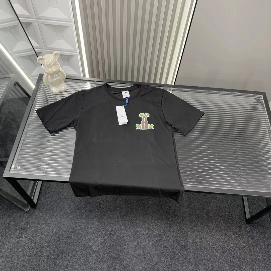 Empfohlene neue Kurzarmshirts: das adidas Trefoil Digital Floral Kurzarmshirt. Alle drei Logos sind identisch mit denen auf der offiziellen Website. Zoomen Sie hinein, um Details zu sehen. Foto mit der Originalkamera aufgenommen.