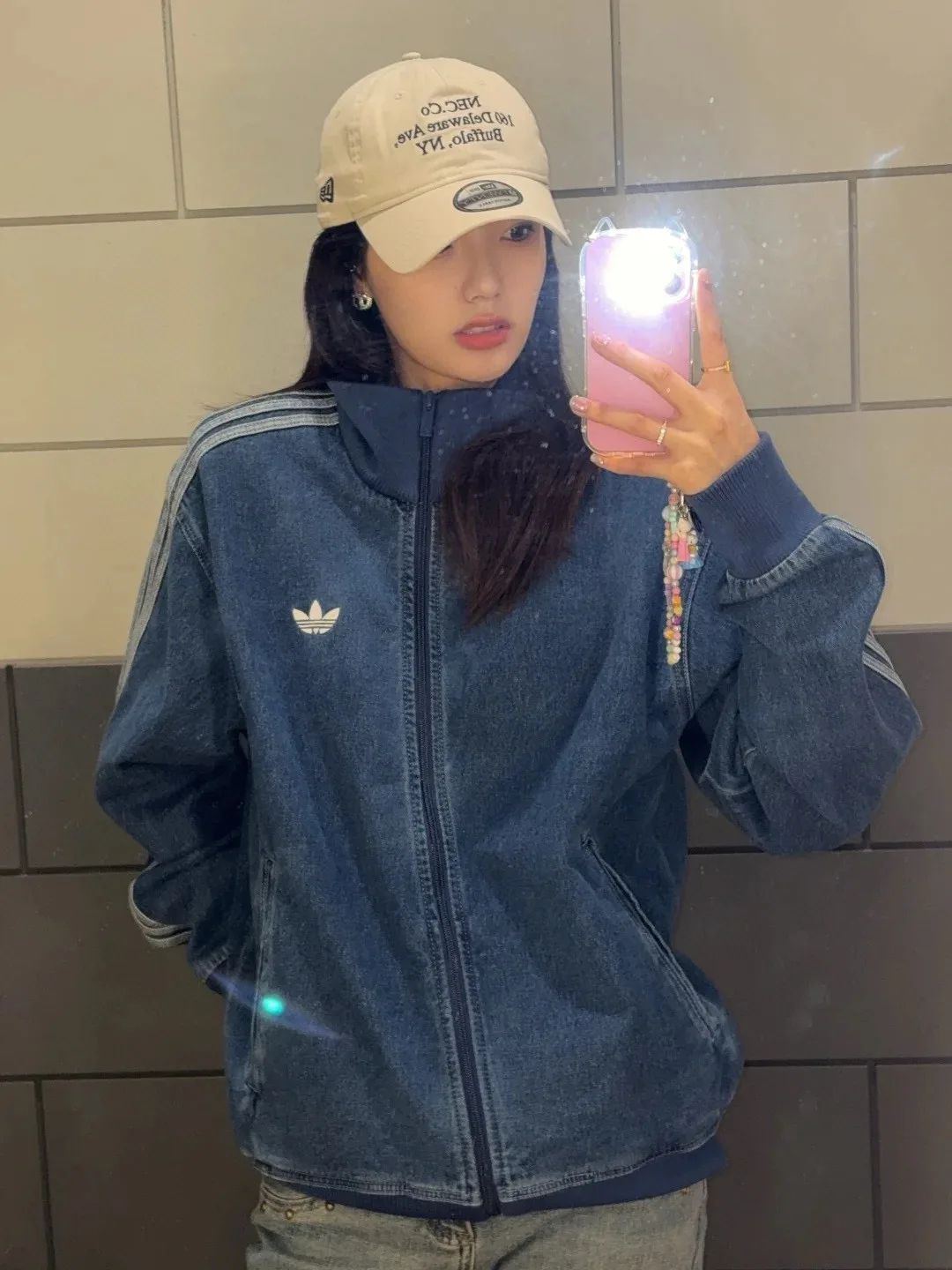 adidas Originals Firebird DENIM FB TT Trefoil Zipper Stand Collar Loose Casual Vintage Washed Jeansjacke