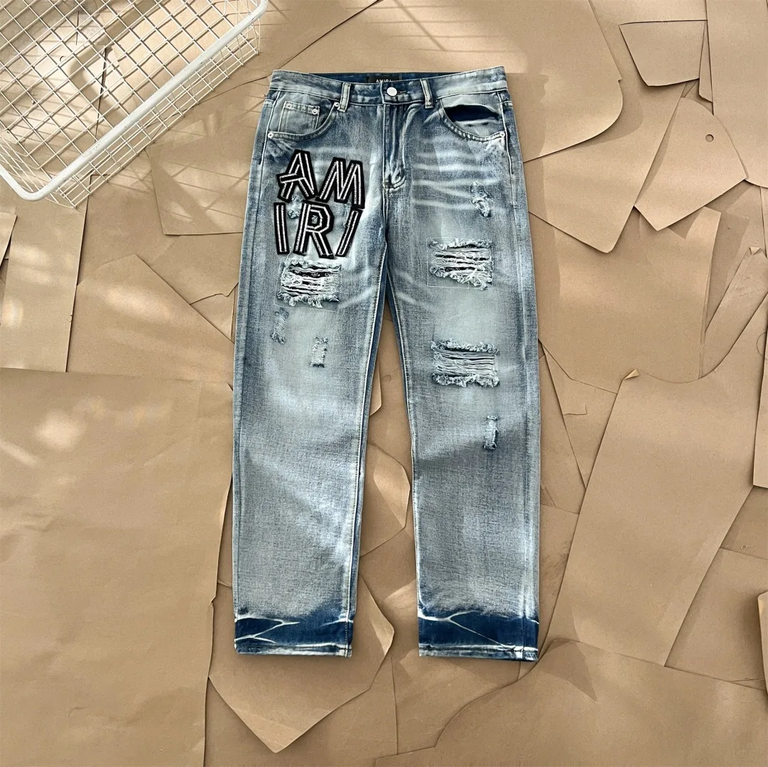 Diese gewaschene Jeans eines renommierten Herstellers verströmt ein luxuriöses Tragegefühl. Das Used-Look-Design an den Knien und die Patchwork-Lederakzente setzen ein Statement. Der Lederbund ist mit einem Namensschild versehen. Der Fokus liegt bei diesem Style nicht auf der Waschung selbst, sondern auf der Form und Passform des Used-Looks. Das Geheimnis liegt in der Handwerkskunst, einschließlich der nachträglichen Abnutzung, der handwerklichen Schnitte und anderer handgefertigter Details. Diese Kosten sind weitaus höher als die der Fließbandproduktion.