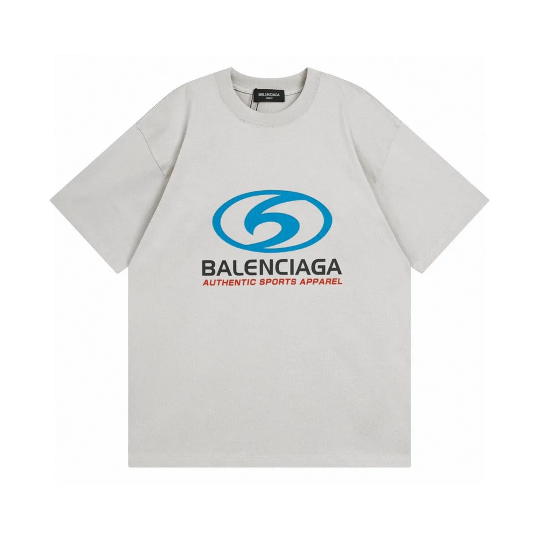 BALENCIAGA/Balenciaga SS – Konfektionsfertiges, kurzärmliges T-Shirt im Used-Look mit vertikalem Rissmuster und neuem Logo.