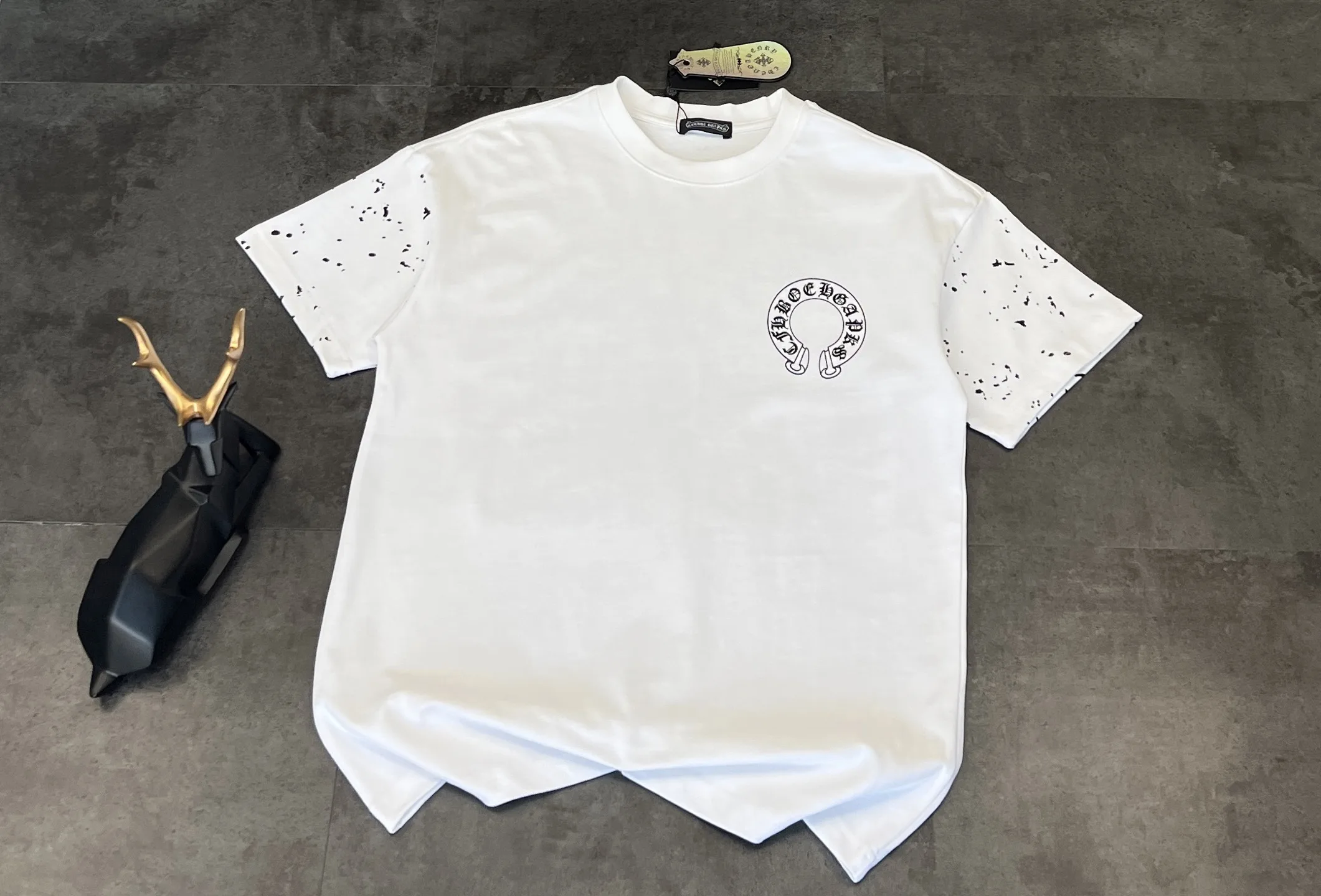 Neue Kurzarm-T-Shirts erhältlich! Chrome Hearte CH SS Sommer-Neuheit. Hergestellt aus einem hochgewichtigen, gebürsteten, gewaschenen Doppelgarn-Stoff und mit einem Rundhalsausschnitt mit Tupfen und Hufeisen-Print. Dieses Kurzarm-T-Shirt aus reiner Baumwolle ist ein leichtes, luxuriöses Must-have für jeden Tag. Sehen Sie sich die richtige Version an! Vergleichen Sie! Hergestellt aus einem hochgewichtigen, enzymgewaschenen, speziell gewebten Stoff mit Used-Look-Finish. Mit schulterlangem Kragen und doppelfädiger Vierfachnaht. Individuelles Logo-Design. Unisex-Stil!