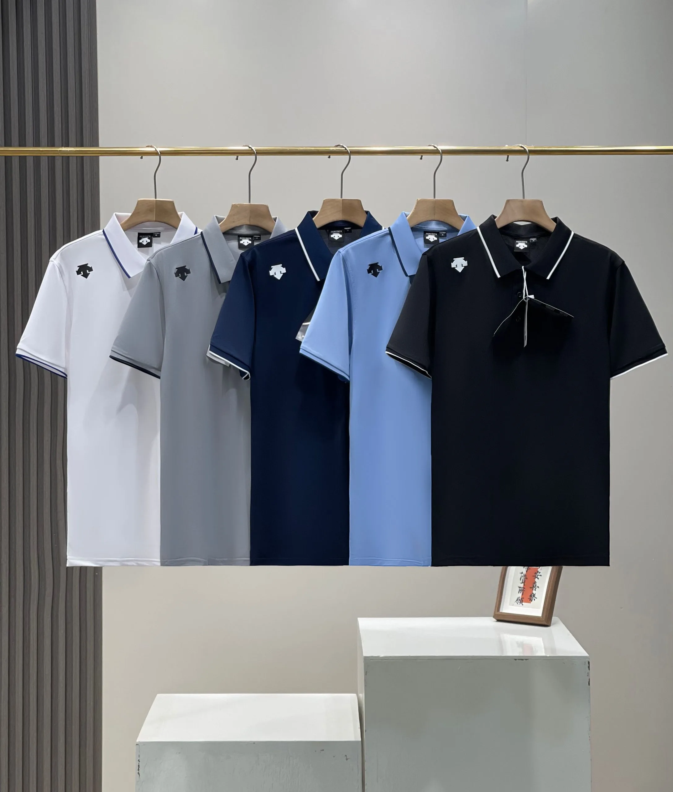 Neu eingetroffen!!! Special/DESCENTE Sommer-Pärchen-Shirt mit gestreiftem Rippkragen und atmungsaktivem Tech-Kurzarm