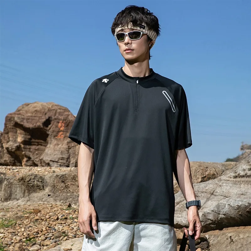 DESCENTEs sommerliches Kurzarm-T-Shirt aus Eisseide (Unisex) ist ein echter Verkaufsschlager! Kühl, hautfreundlich, schnelltrocknend und nahtlos verarbeitet! Hergestellt aus importiertem, hochtechnologischem, funktionalem Mischgewebe, das beim Tragen negative Ionen freisetzt. Perfekt geschnitten für asiatische Körperformen! Hergestellt von einem vertrauenswürdigen OEM, ist dieses hochwertige Shirt unübertroffen! Verziert mit dem charakteristischen Logo der Marke strahlt es Eleganz und Raffinesse aus und sorgt für einen luxuriösen Look. Überzeugen Sie sich selbst und erleben Sie den besten Look! Es lohnt sich!