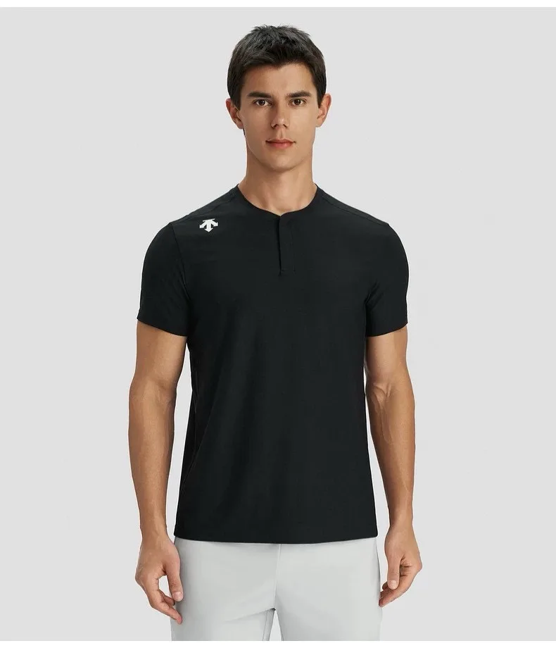 Das schnelltrocknende Kurzarm-T-Shirt aus Eisseide mit verdeckten Knöpfen von Descente ist stylisch, lässig und vielseitig! Das schnelltrocknende Kurzarm-Trainings-T-Shirt mit Henley-Kragen für Herren der DESCENTE TRAINING-Serie. Technologie ermöglicht Training, Stil definiert Stil und Schweizer Qualität ist das Markenzeichen hochwertiger Sportbekleidung. Descente, eine Premium-Sportbekleidungsmarke aus der Schweiz, ist weltweit für ihre innovative Technologie und ihr professionelles Design bekannt. Die für Sportbegeisterte konzipierte TRAINING-Serie integriert modernste Skibekleidungstechnologie in das tägliche Training und verleiht jedem Stück außergewöhnliche Leistung. Innovatives, schnelltrocknendes Gewebe beseitigt Schweiß. Feuchtigkeitsableitend und schnelltrocknend: Das leistungsstarke, schnelltrocknende Gewebe lässt Schweiß schnell verdunsten und hält Sie während des gesamten Trainings trocken und komfortabel, wodurch klebriges Unbehagen vermieden wird. Atmungsaktives Mesh-Design: Belüftungen auf dem Rücken und unter den Armen verbessern die Luftzirkulation und halten Sie auch bei intensivem Training frisch. Das Henley-Kragendesign, ein Crossover aus robust und stylisch, vereint klassischen und modischen Appeal: Inspiriert vom Rudern, besticht der Henley-Kragen durch sein halboffenes Kragendesign, das Retro- und moderne Elemente vereint und so vielfältige Styling-Möglichkeiten eröffnet: Tragen Sie es allein, um Ihr Schlüsselbein zu betonen, oder tragen Sie es darunter für einen Lagenlook. Dreidimensionale Schnittführung: Verstärkte Schulternähte betonen die Konturen von Hals und Schultern und betonen eine modellierte Silhouette. Ein markanter Look für Sport und Straße. Aufwendige Details definieren die sportliche Ästhetik. Ergonomische Passform: Passt sich dem asiatischen Männerkörper an und sorgt für geschmeidige, uneingeschränkte Bewegungsfreiheit und deutlich verbesserte Mobilität. Strapazierfähige Verarbeitung: Präzise Nähte und hochelastisches Gewebe sorgen dafür, dass die Stoffe auch nach vielen Wäschen frisch und neuwertig aussehen. Vielseitig einsetzbar, vom Fitnessstudio bis in die Stadt: Vom morgendlichen Lauf über das Training im Fitnessstudio bis hin zum Wochenendausflug – dieses T-Shirt lässt sich problemlos sowohl sportlich als auch lässig kombinieren. Kombinieren Sie es mit Sportshorts für einen stylischen Look oder mit lässigen Hosen für einen minimalistischen, trendigen Look. Farbe: Schwarz/Marineblau