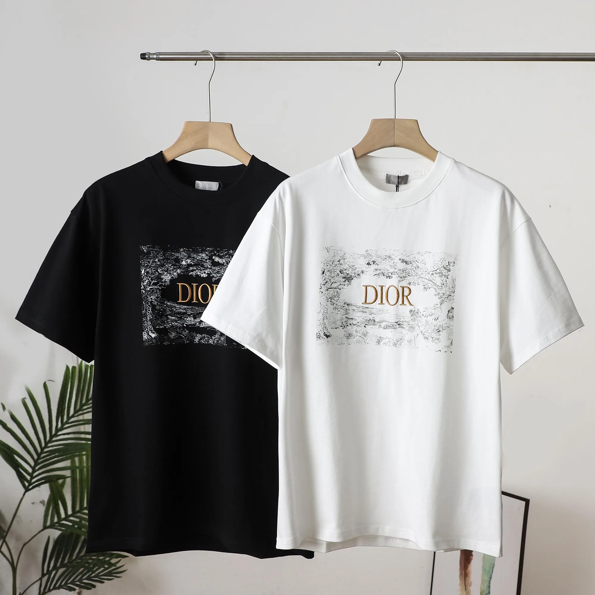 Das große goldene Dior-Logo auf der Brust fügt sich nahtlos in den Print ein. Schwarz-weiße Kontrastfarben sorgen für ein harmonisches Gesamtbild. Dank importierter digitaler Präzisionsdrucktechnologie ist dieses Shirt atmungsaktiv und lichtbeständig und besticht durch seine außergewöhnlich hochwertige Reproduktionsverarbeitung. Hergestellt aus schwerer, gewaschener Baumwolle, ist es beständig gegen Einlaufen und Verformen und bietet ein hochwertiges Tragegefühl.