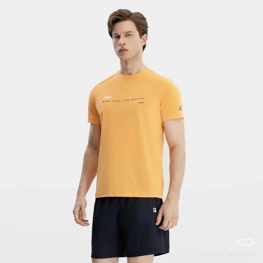 FILA / Offizielles Fila Kurzarm-T-Shirt für Herren in vier Farben. Dieses schlichte Sportswear-Strickoberteil aus schweißableitender, schnelltrocknender Funktionsbaumwolle ist aus schweißableitender, schnelltrocknender Funktionsbaumwolle gefertigt.