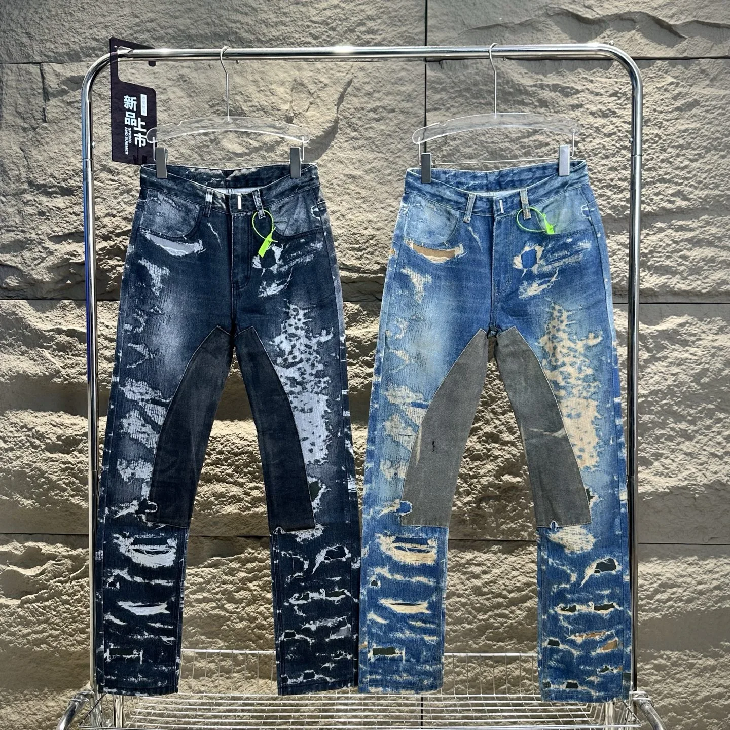 GVC Destroyed Printed Patchwork Jeans. 3D-Laserdruck Givenchy Destroyed Jeans, Premium Edition