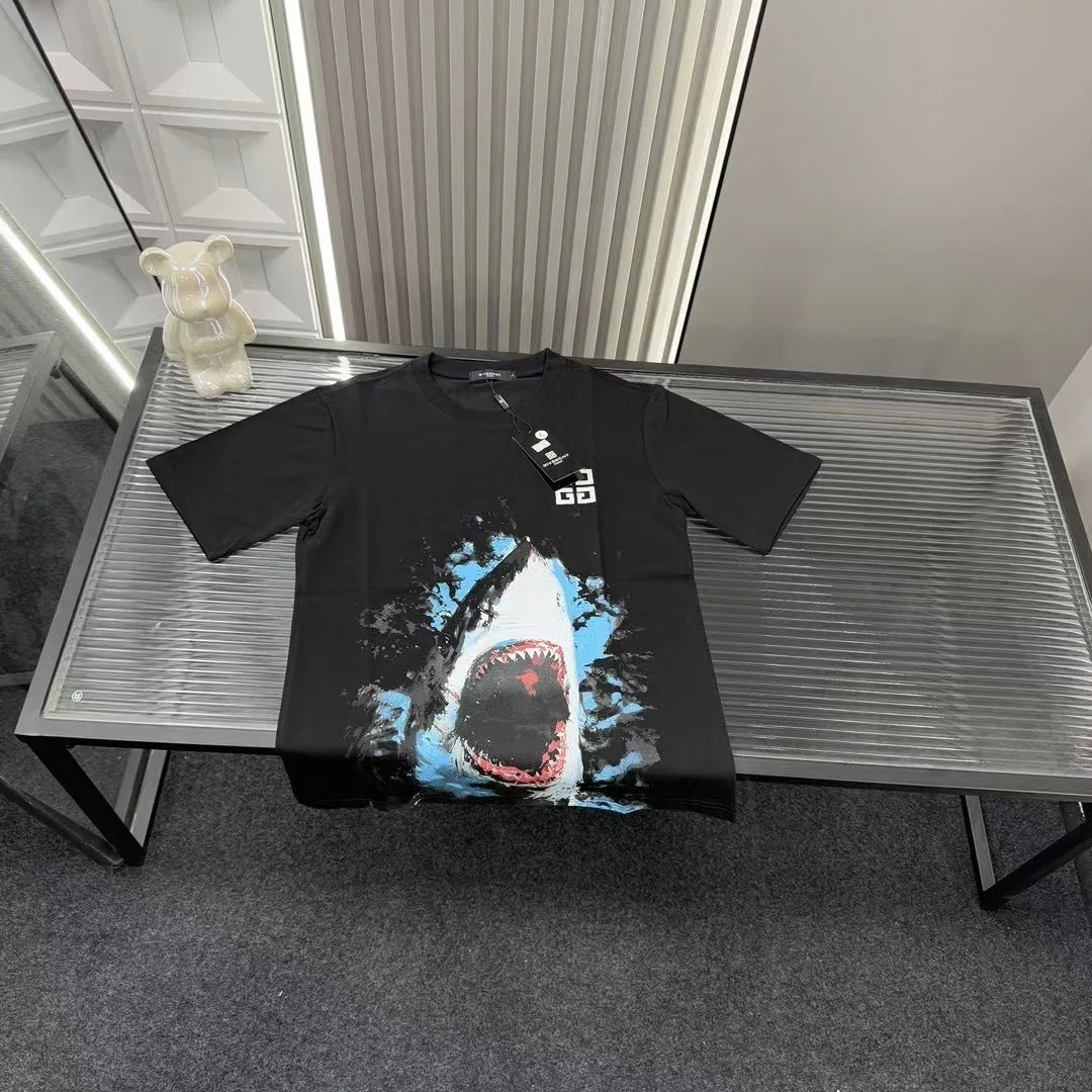 Empfohlenes neues Kurzarmshirt mit Givenchys großem Hai-Logo. Alle drei Logos sind enthalten, wie auf der offiziellen Website zu sehen. Zoomen Sie hinein, um Details zu sehen. Foto aufgenommen mit der Originalkamera.