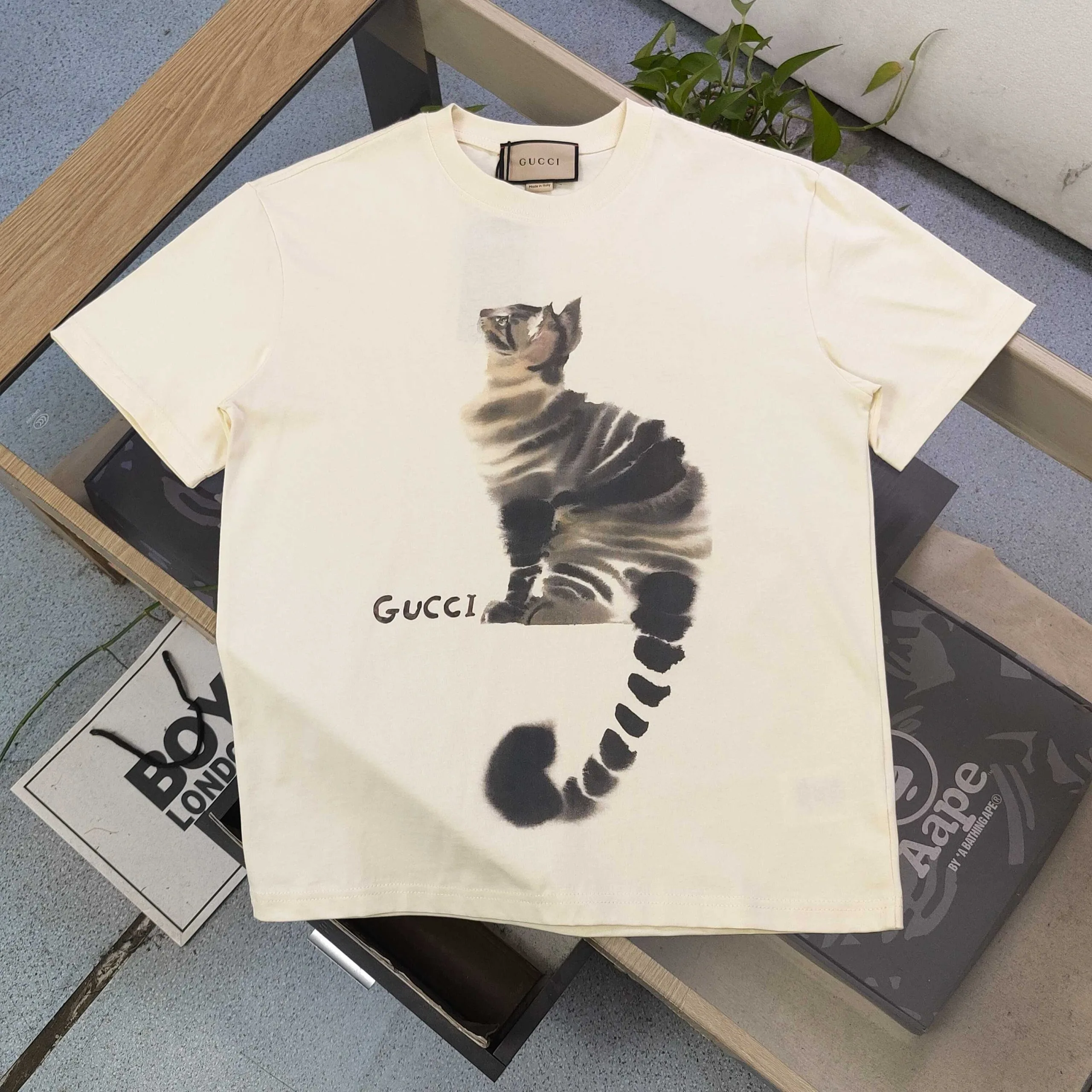 Neues, lässiges, kurzärmeliges T-Shirt für Paare mit GUCCI Tabby Cat-Logo und Schriftzug-Print. Einzigartig gefärbt aus umweltfreundlicher, doppelt gekämmter Baumwolle für ein geschmeidiges, pillingresistentes Tragegefühl. Hergestellt aus hochwertiger, doppelt gekämmter, glatter Baumwolle. Garantierte Qualität. Maßgefertigter Stoff, individuelle Färbung und Patina-Druck sorgen für Umweltfreundlichkeit und Reißfestigkeit. Qualität vergleichen. Unisex-Modell erhältlich!