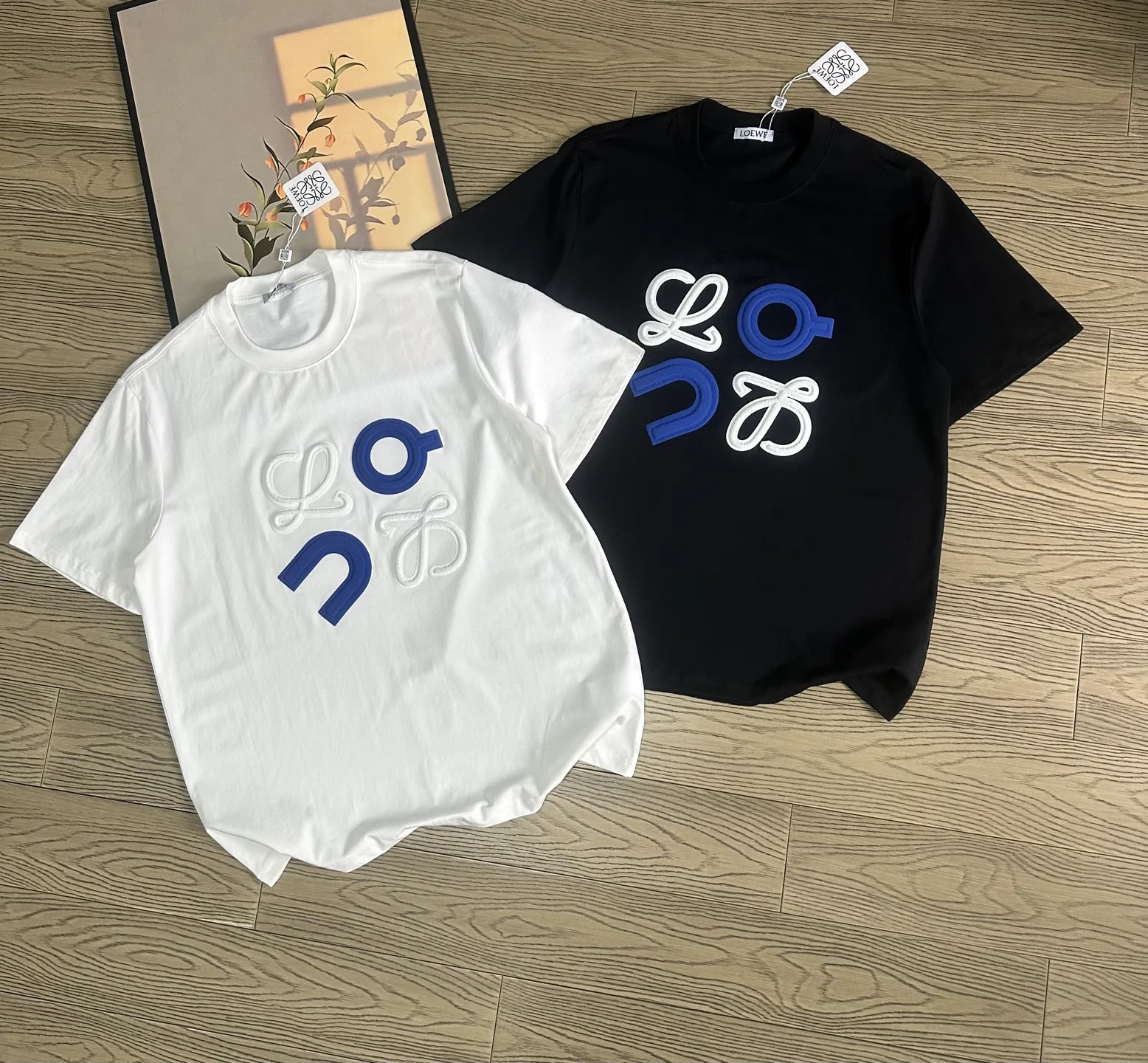 Premium Qualität Loewe Kurzarm Schwarz Baumwolle Druck Luxus