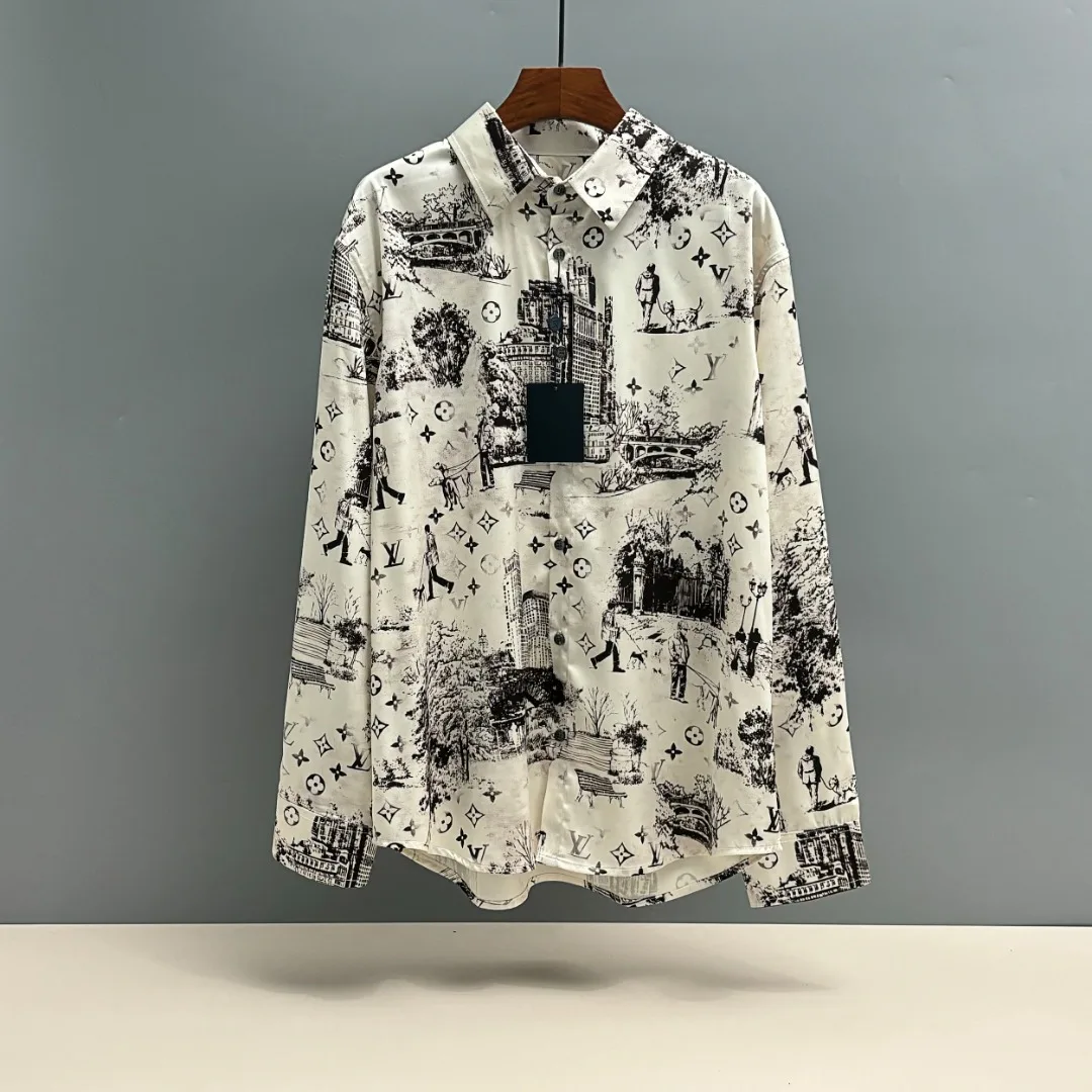 LV/Louis Vuitton Seidenhemd mit Frühherbst-Print