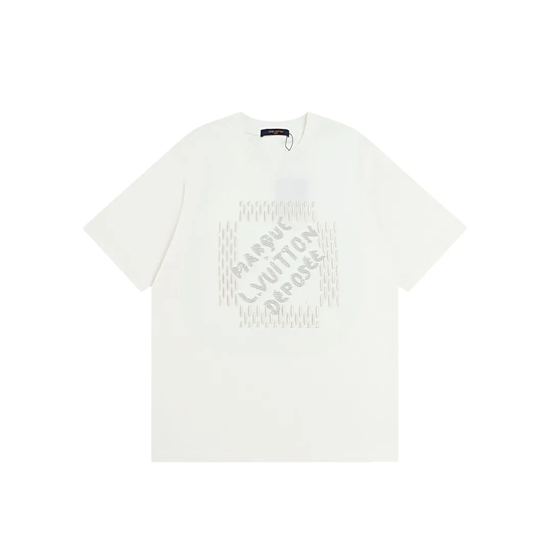 Premium Qualität Louis Vuitton Kurzarm Baumwolle Bestickt Luxus
