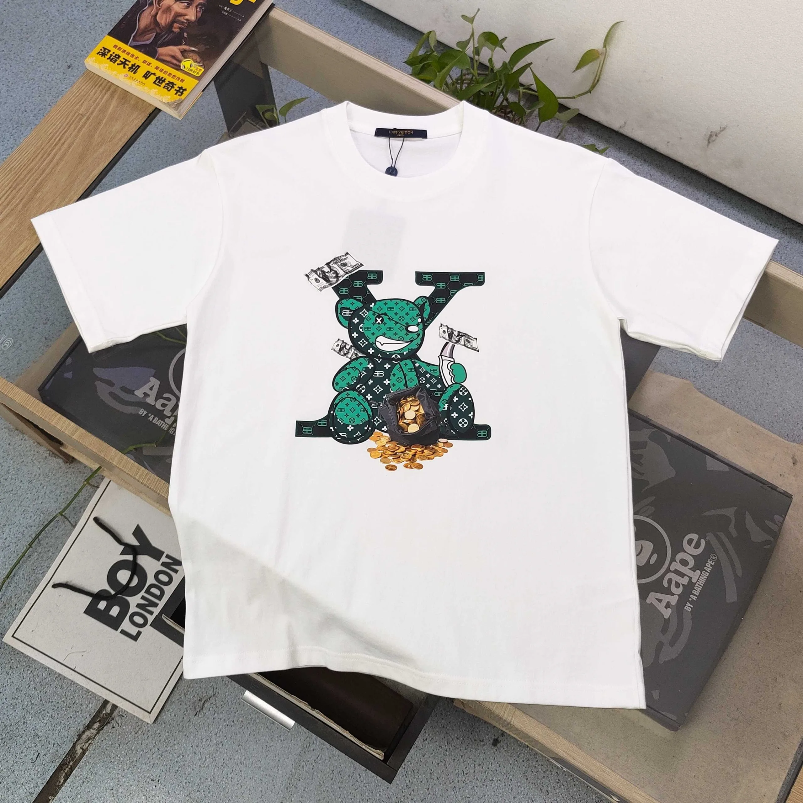 Premium Qualität Louis Vuitton Kurzarm Gold Baumwolle Casual Luxury