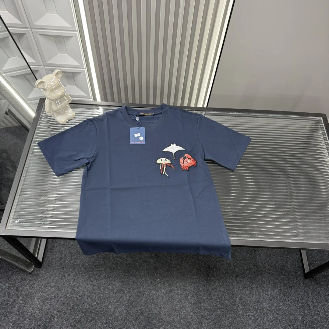 Empfohlene neue Kurzarmshirts: Louis Vuittons Kurzarmshirts mit Meerestier-Stickerei. Alle drei Logos sind enthalten, passend zur offiziellen Website. Zoomen Sie hinein, um Details zu sehen. Foto mit der Originalkamera aufgenommen.