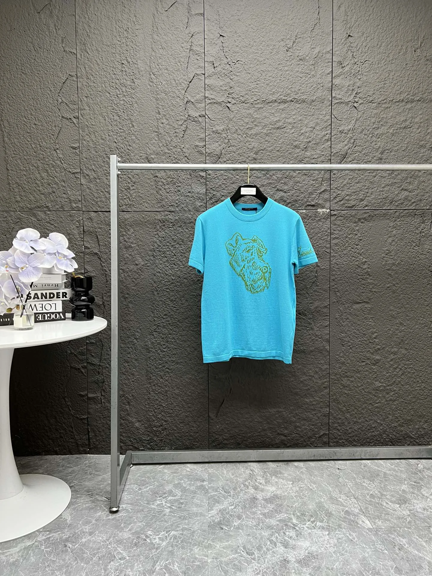Neues Louis Vuitton LV Hundekopf-Logo-Jacquard-Design für Paare: Locker sitzendes, kurzärmliges Strick-T-Shirt. Einzigartig gefärbt mit reaktivem, umweltfreundlichem Stoff. Hergestellt aus hochwertiger Baumwolle für ein geschmeidiges Tragegefühl und Pillingfreiheit. Garantierte Qualität, Originalstoff, individuell gefärbt. Vergleiche erwünscht. Unisex-Stil!