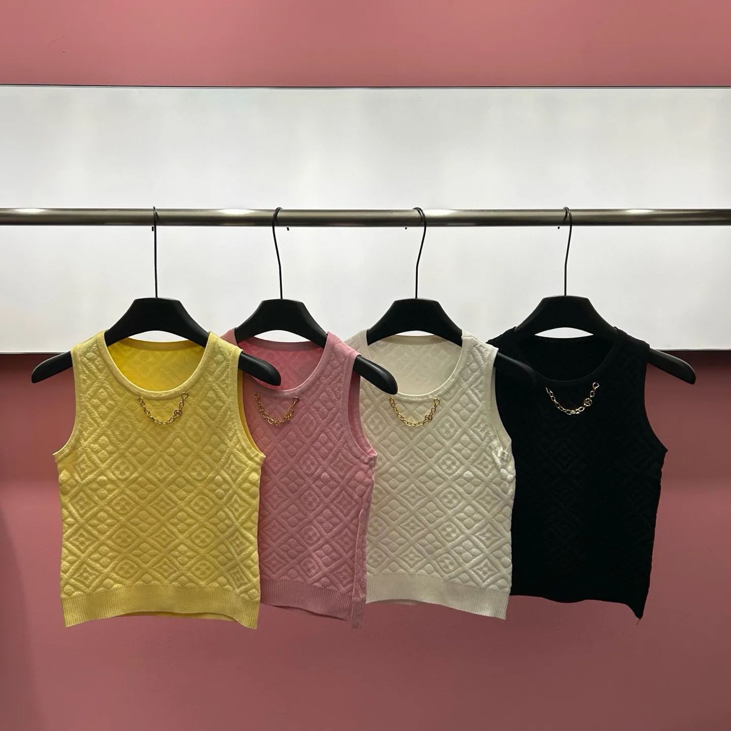 Louis Vuitton LV Strickweste mit Jacquard-Kette und geprägtem Diamant-Eselmotiv, Rundhalsausschnitt