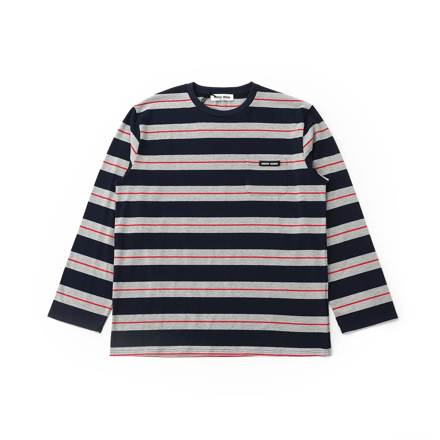 Miumiu Miu Miu SS Navy Strick-Langarm-T-Shirt mit Rundhalsausschnitt