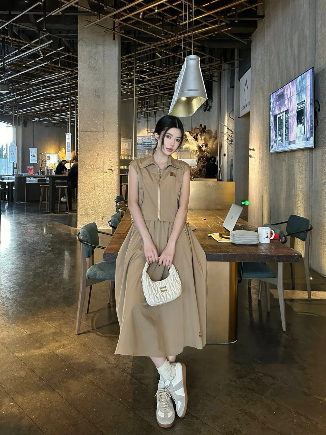 Miumiu Miu Miu Set aus Lederweste mit besticktem Revers, Reißverschluss und elastischem Rock