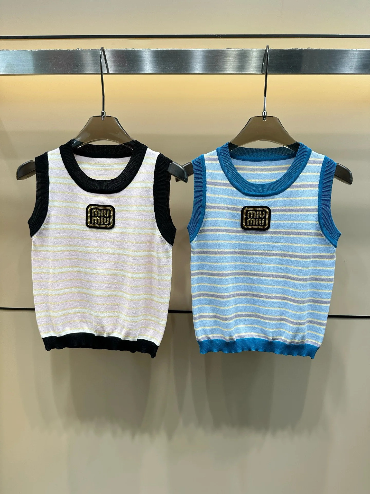 Premium Qualität Miu Miu Weste Gold Strick Bestickt Luxus