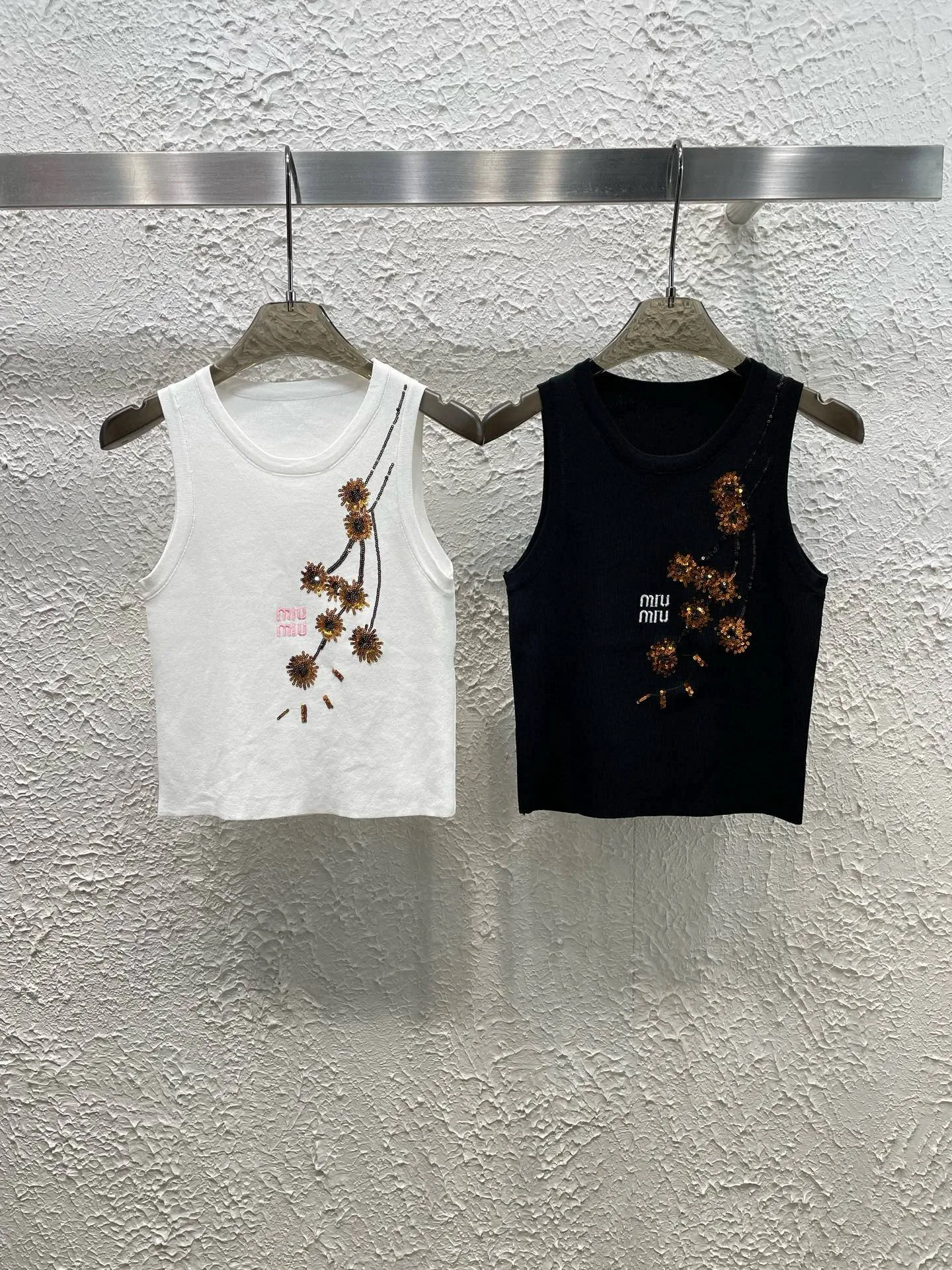Premium Qualität Miu Miu Weste Weiß Strick Bestickt Luxus