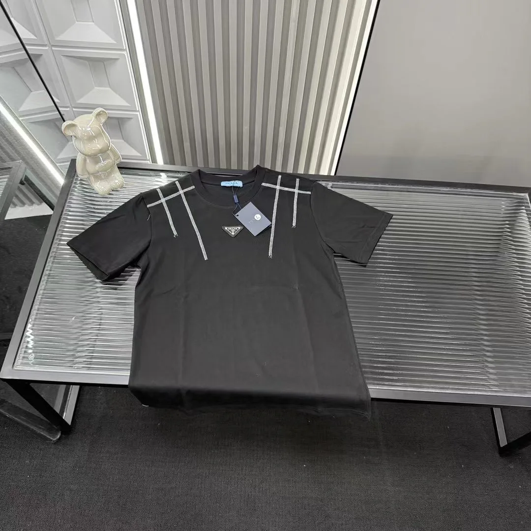 Premium Qualität Prada Kurzarm Schwarz Bestickt Luxus