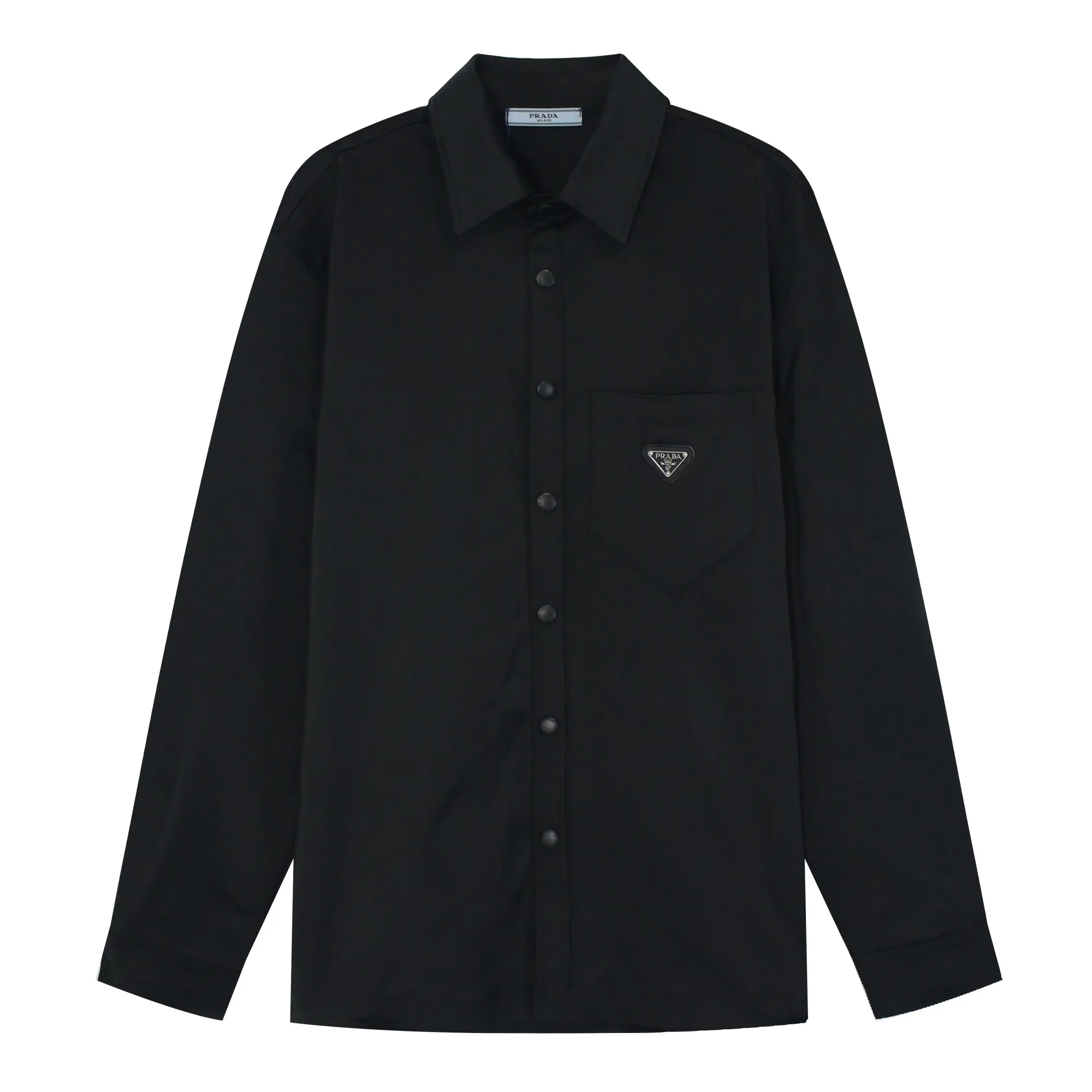 Prada SS Classic Langarm-Hemdjacke aus Nylon mit individuellem Dreieckslogo