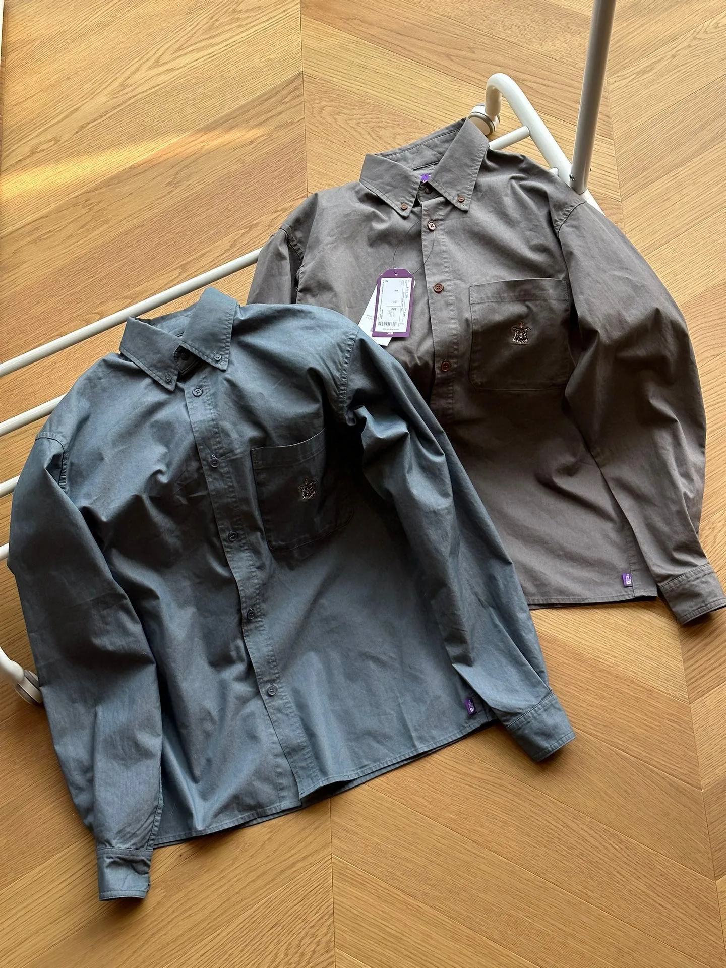 Sonderangebot, Rückgabe und Umtausch möglich! THORTH FACE Purple Label FFFES Button-Down-Hemd mit bestickten langen Ärmeln