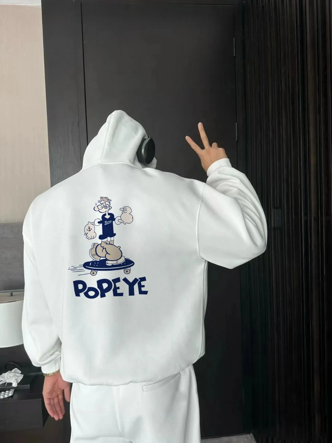 Das neueste Kapuzensweatshirt von The North Face TNF mit Popeye-Logo-Print vorne und hinten für Paare.