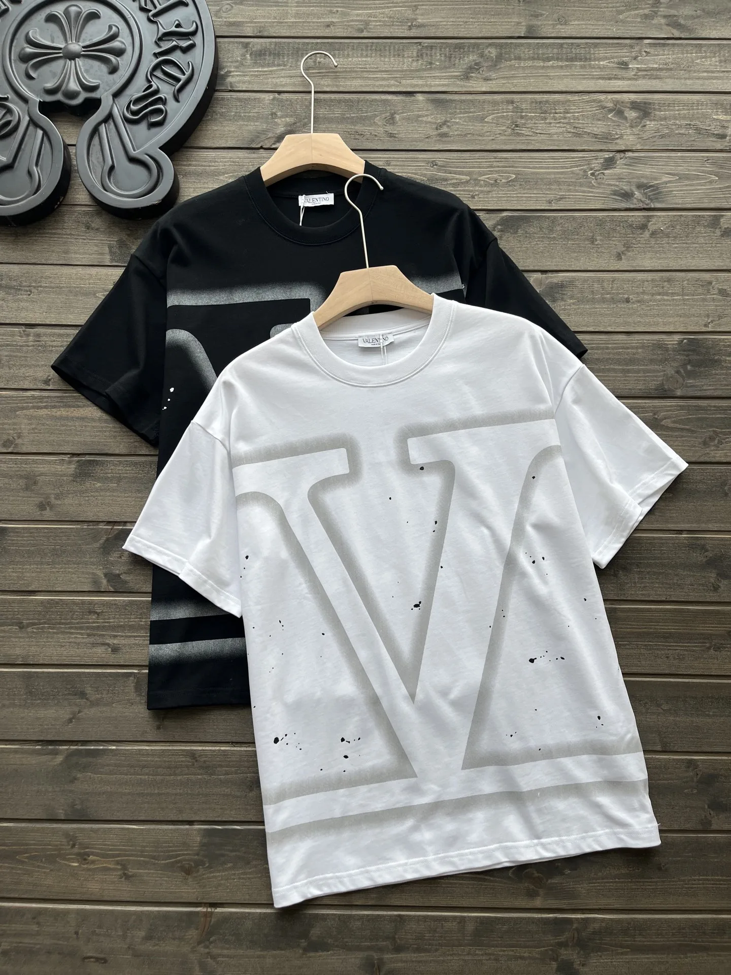 Premium Qualität Valentino Kurzarm Schwarz Baumwolle Logo Luxus