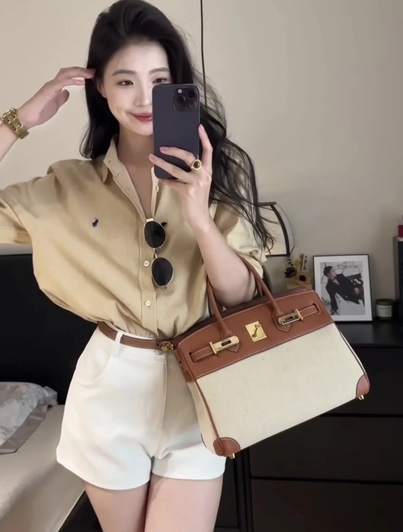 Dieses Outfit ist ein absoluter Volltreffer! Stilvoll und selbstbewusst – dieses Pony-Hemd in Kombination mit hoch taillierten Shorts strahlt eine raffinierte, elegante Ausstrahlung aus.