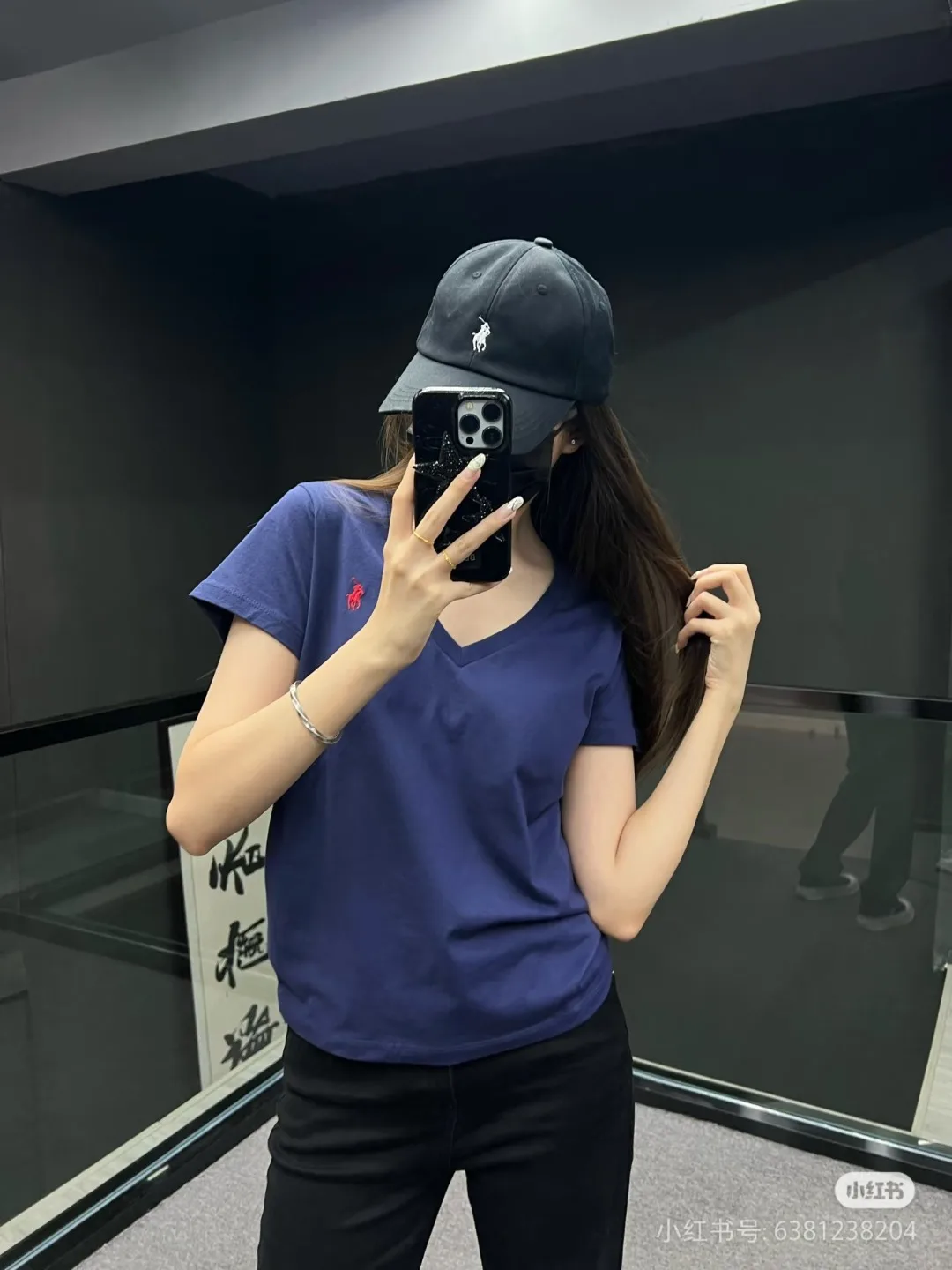 Ralph Laurens beliebtes und vielseitiges klassisches V-Ausschnitt Kurzarmshirt für Damen