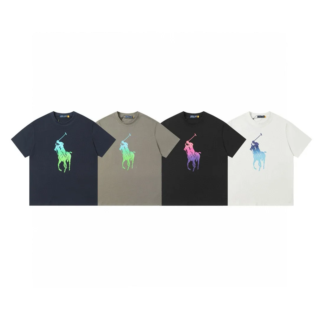 Ralph Lauren Polo Ralph Lauren International Store – Das neueste lässige Rundhals-T-Shirt mit Farbverlauf und Pferdelogo-Print für Paare – Originalqualität