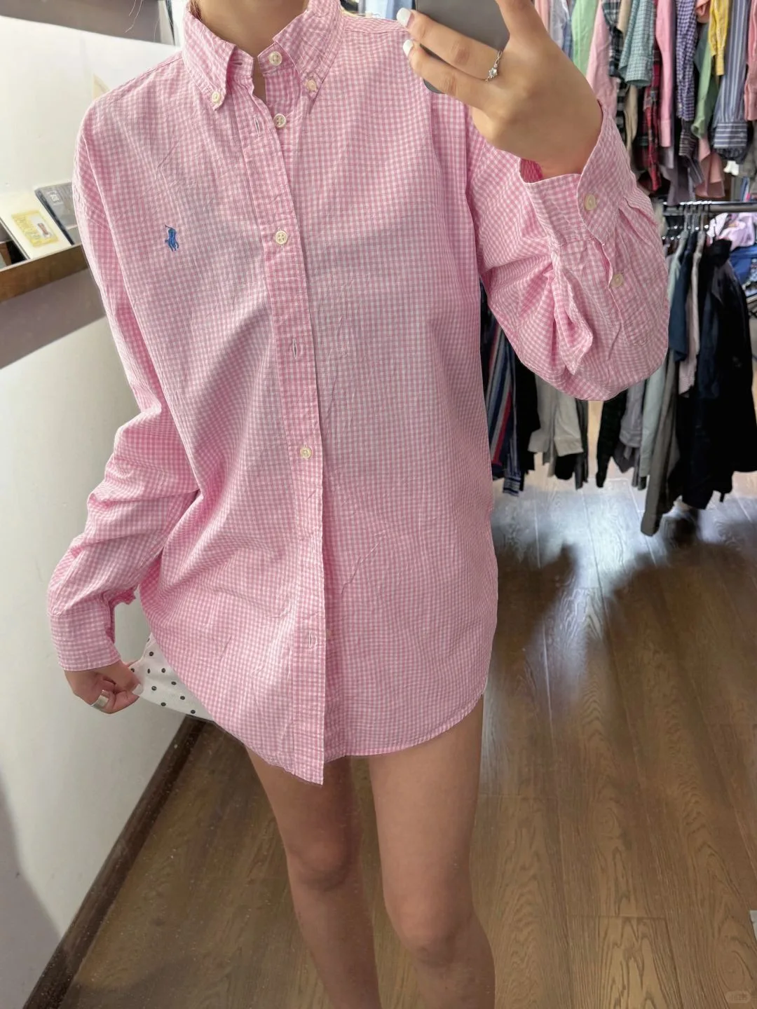 Ralph Lauren Unisex-Paarhemd mit Langarm im Vintage-Stil mit kleinem Karomuster