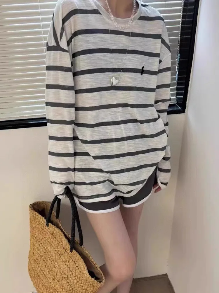 Ralph Lauren [Set mit gestreiften, bestickten Pony-Sonnenschutzshorts]