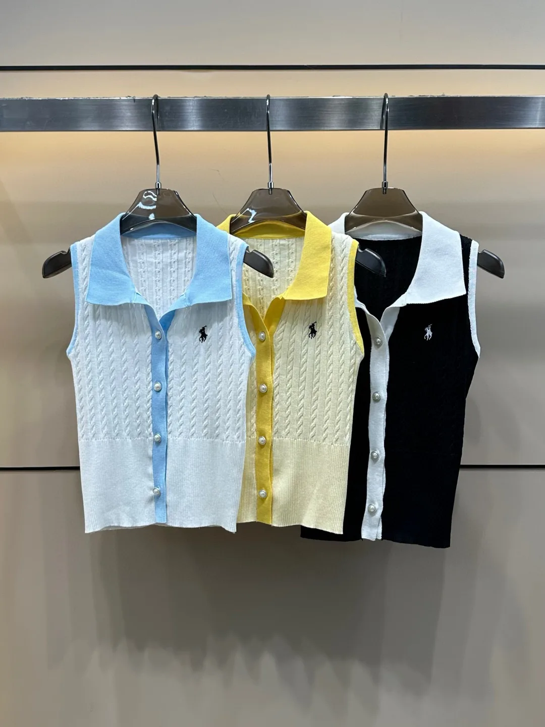 Premium Ralph Lauren Weste Blau Strick Bestickte Kollektion