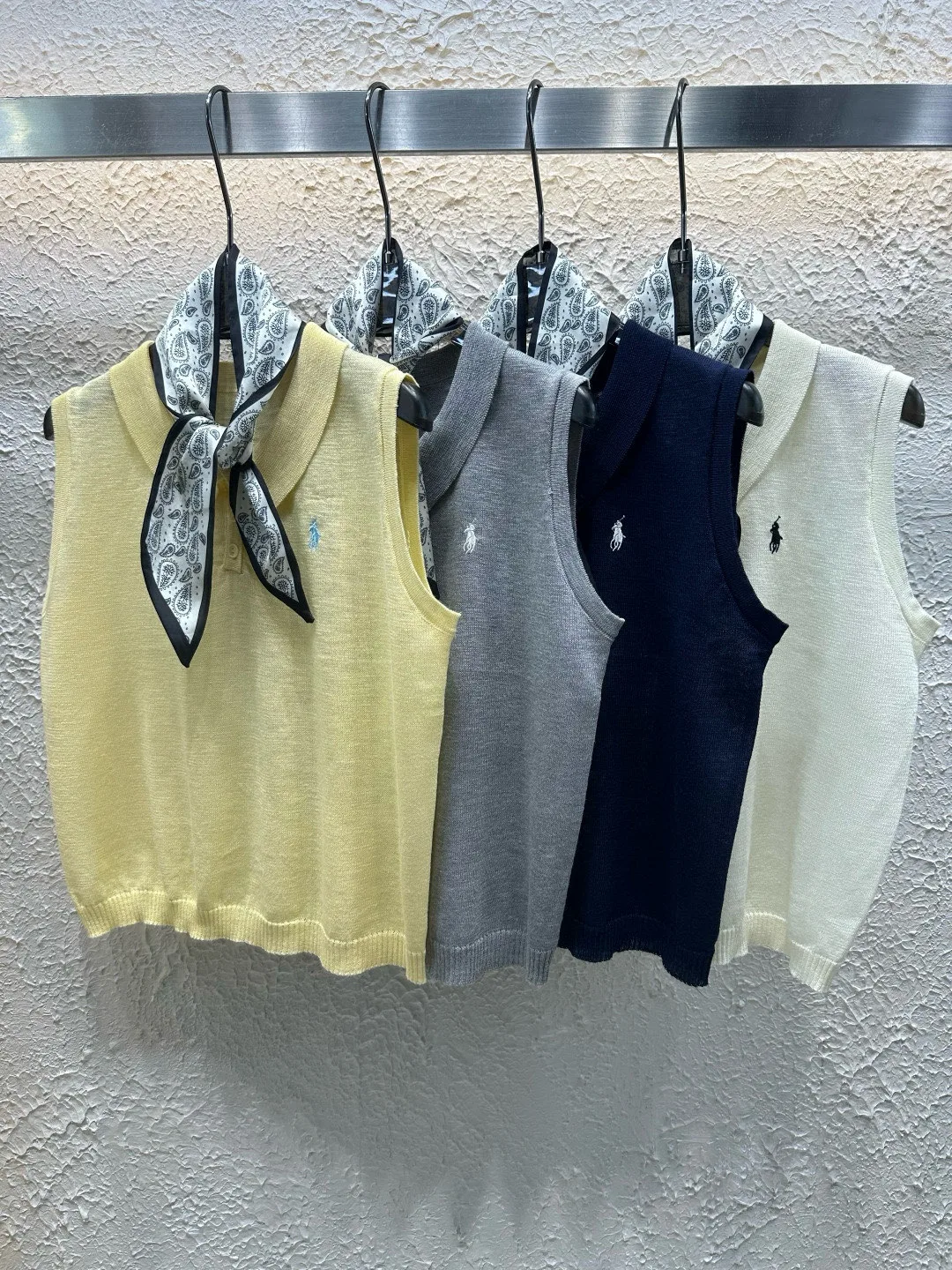 Premium Ralph Lauren Weste Gelb Strick Bestickt Luxus