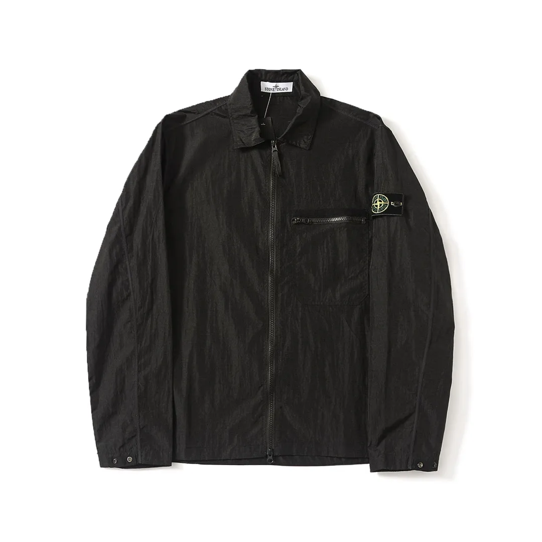 Nachbildung der Stone Island Nylon Meta Series Metallic-Nylon-Langarmjacke mit Reißverschluss und Brustgurt. Sonnenschutz. Maßgefertigter, knittergefärbter Metallic-Nylonstoff für eine nachgebildete Textur. Vollständig maßgeschneiderte Besätze. Eins-zu-eins-Nachbildung. Farben: Schwarz, Himmelblau, Taubengrau. Größen: S–XL. Größentabelle: S passt perfekt. Größen: S M L XL. Schulterbreite: