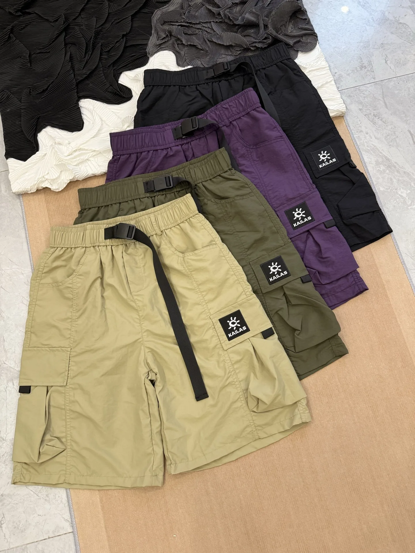 Ein elastischer Kordelzug mit integrierter Nylon-Gurtschnalle am Bund ermöglicht eine einfache Anpassung und vereint Ästhetik mit Funktionalität. Doppelte Seitentaschen bieten flexiblen Stauraum für verschiedene Zwecke. Ob beim Pendeln in der Stadt oder beim Entspannen im Freien – diese Shorts verleihen Ihnen einen lässigen und vielseitigen Look.