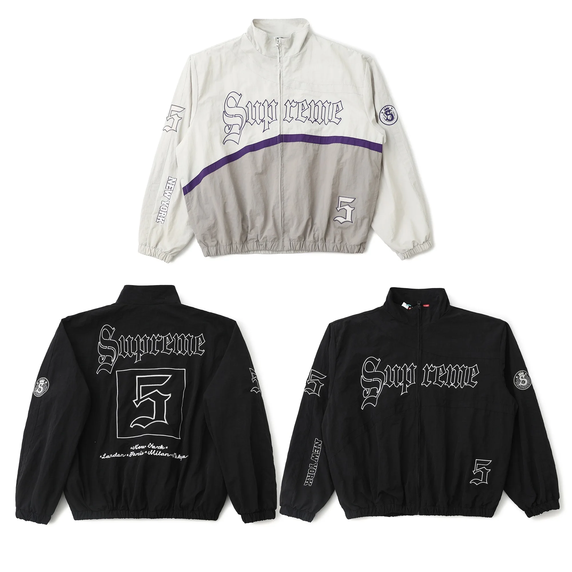 Top-Trendset: Supe SS WEEK Old English Trainingsjacke. Jacke und Hose im amerikanischen Stil mit Logomuster, Reißverschluss und Stehkragen. Unisex.