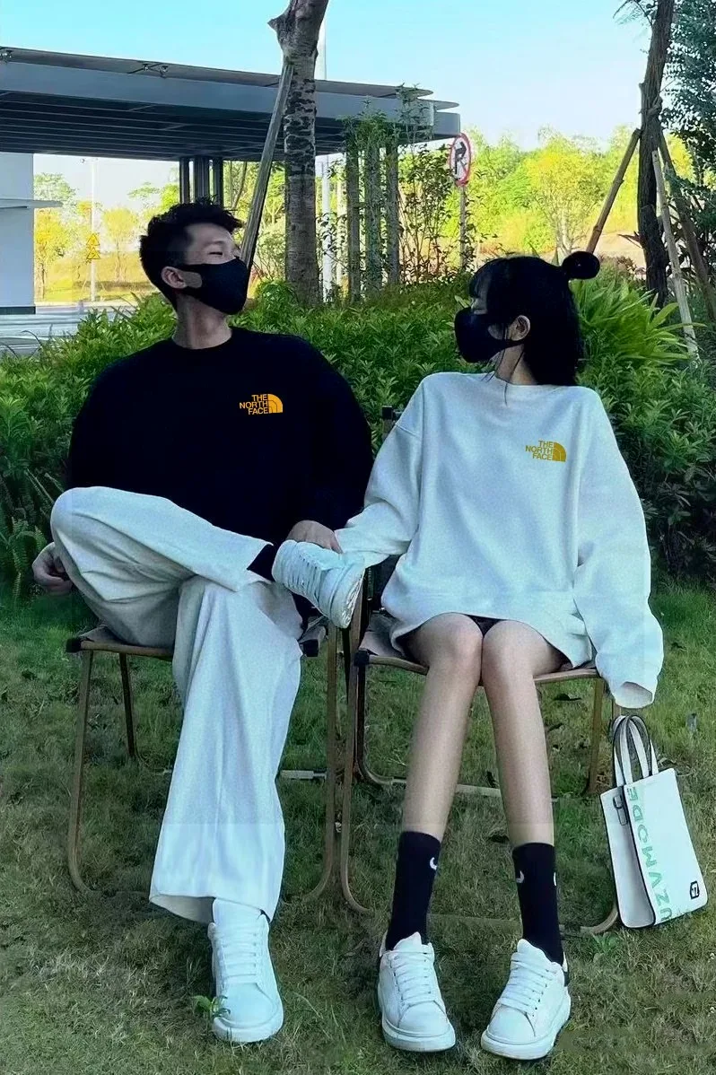 The North Face TNF Co-Branding-Pärchen-Sweatshirt mit Golden Sunset Mountain Series Print